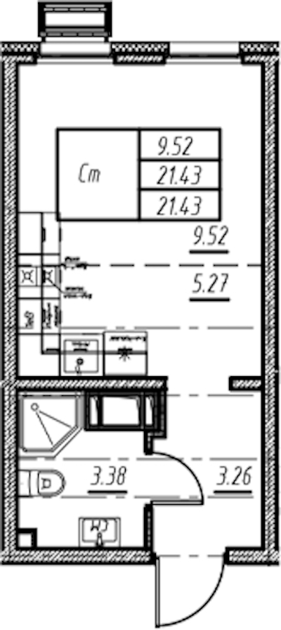 Квартира-студия на 4-ом этаже 21,43 кв.м