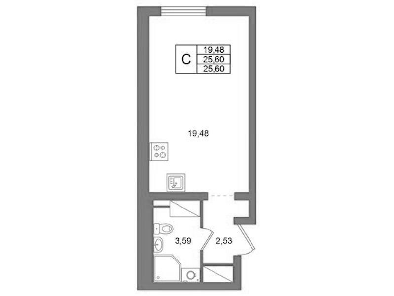Квартира-студия на 5-ом этаже 25,6 кв.м