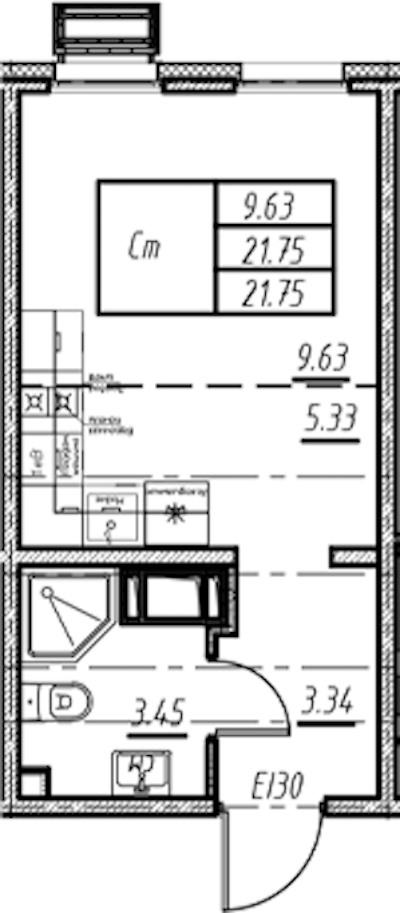 Квартира-студия на 16-ом этаже 21,75 кв.м