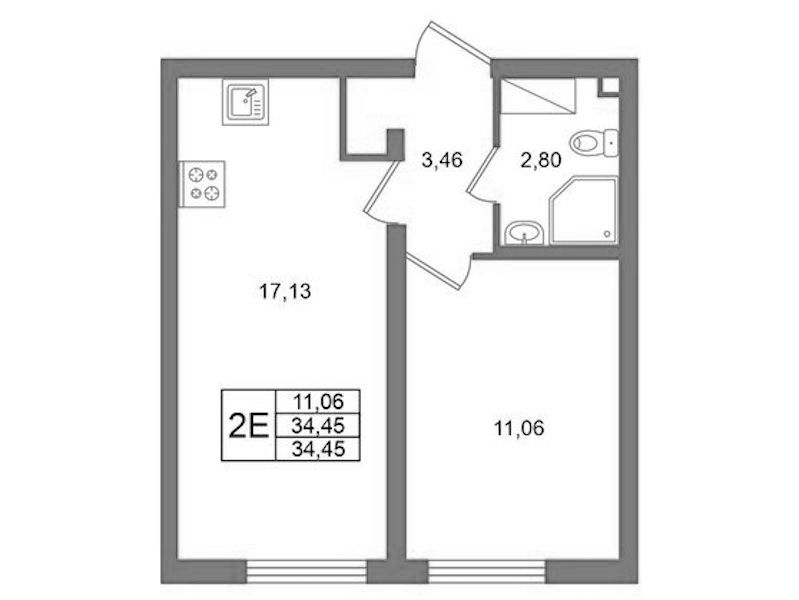 - Площадь34,45 м2