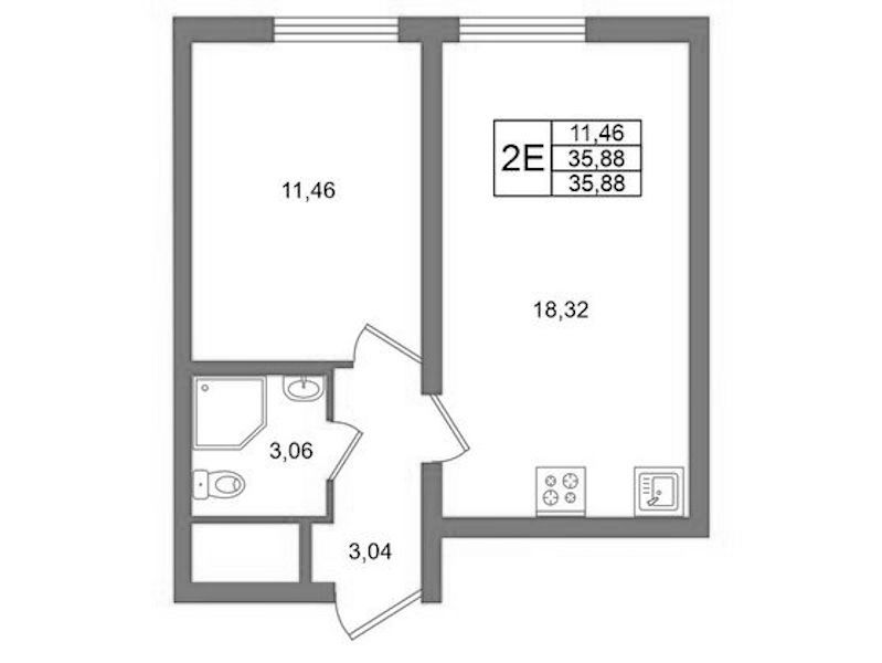 Однокомнатная квартира на 6-ом этаже 35,88 кв.м