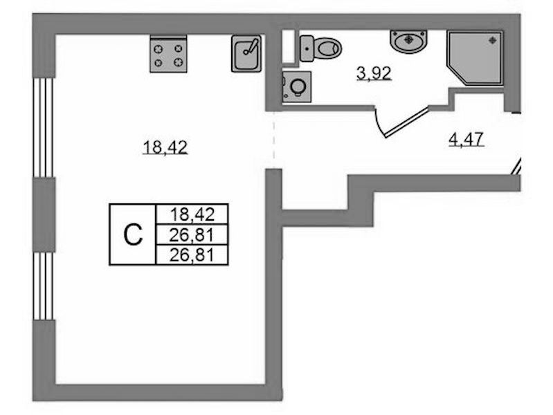 Квартира-студия на 14-ом этаже 26,97 кв.м
