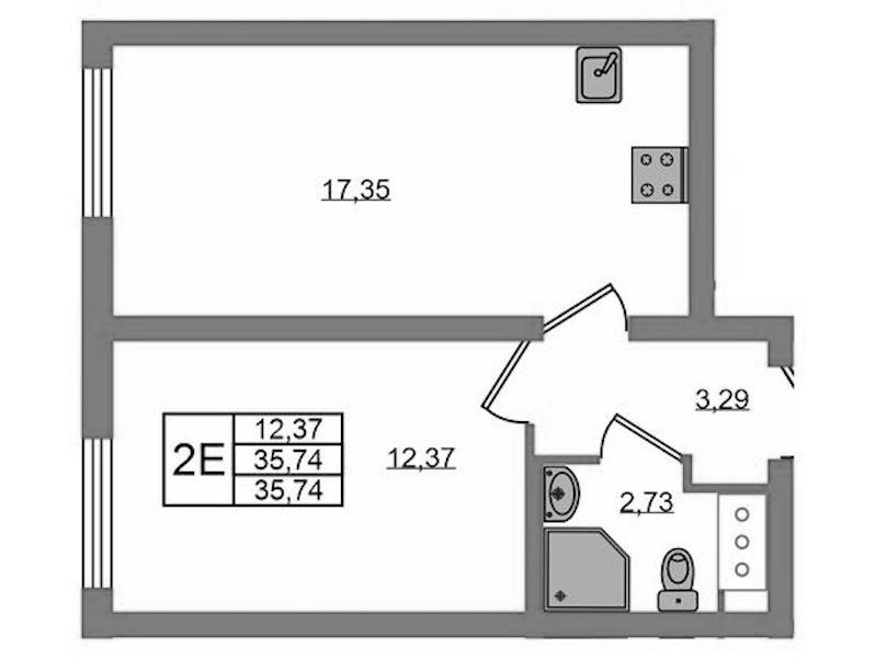 Однокомнатная квартира на 13-ом этаже 35,74 кв.м