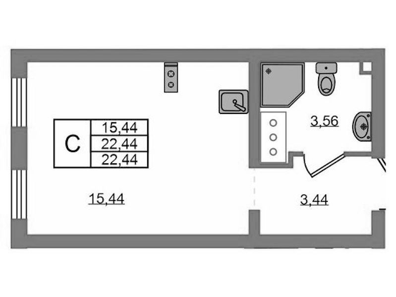 Квартира-студия на 13-ом этаже 22,44 кв.м