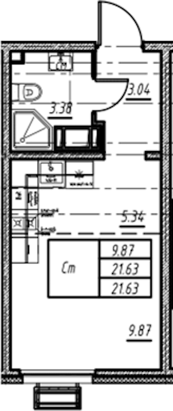 Квартира-студия на 4-ом этаже 21,63 кв.м