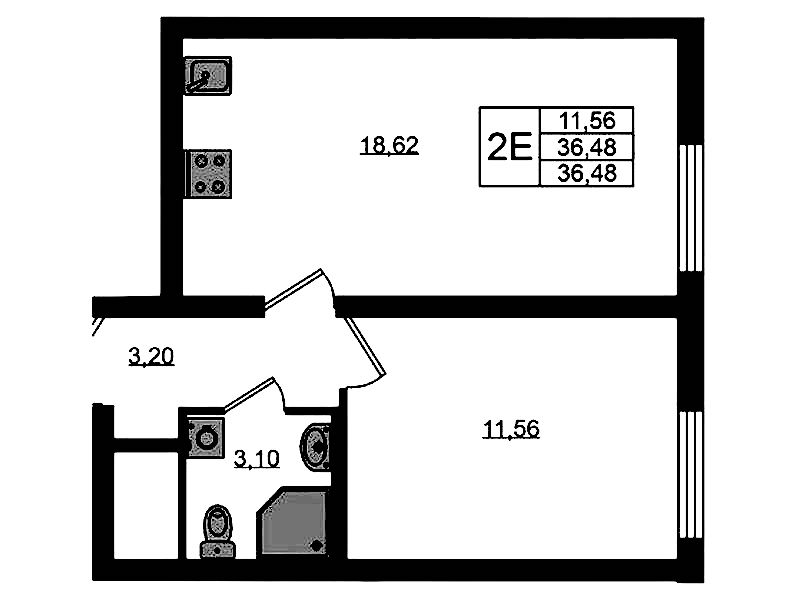 - Площадь36,48 м2