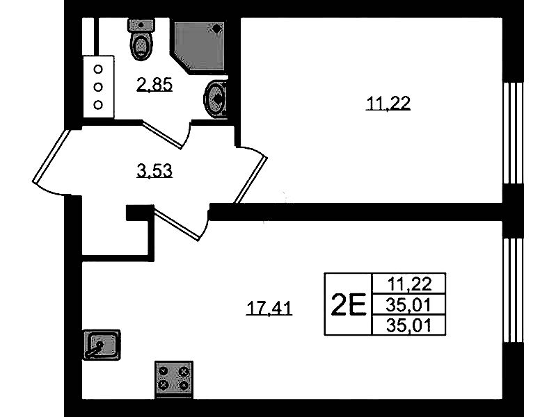 Однокомнатная квартира на 16-ом этаже 35,01 кв.м