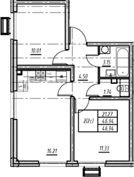 - Площадь46,94 м2