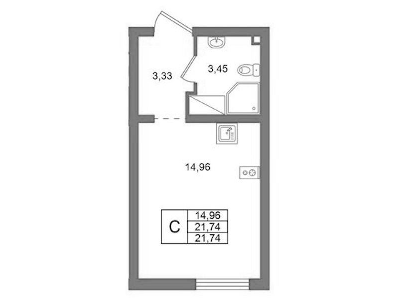 Квартира-студия на 15-ом этаже 21,74 кв.м
