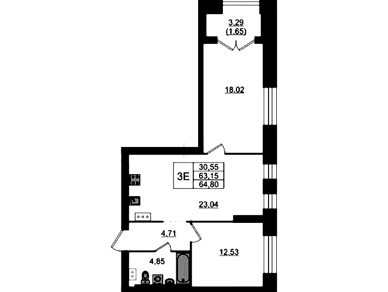 - Площадь64,8 м2