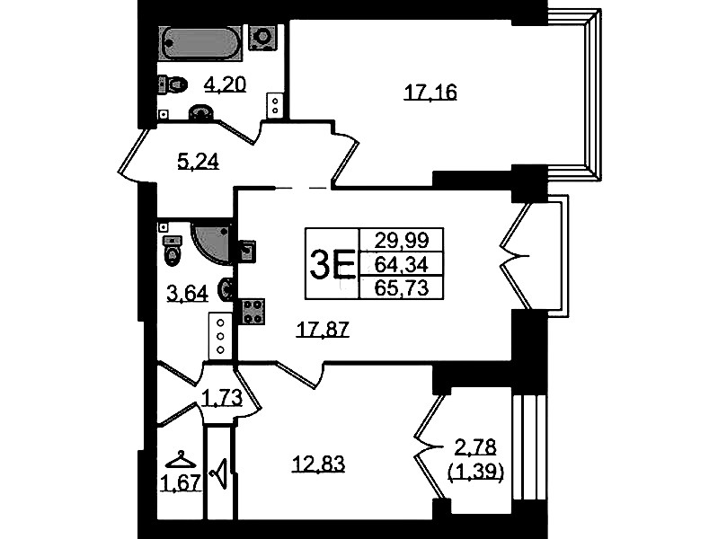 - Площадь65,73 м2