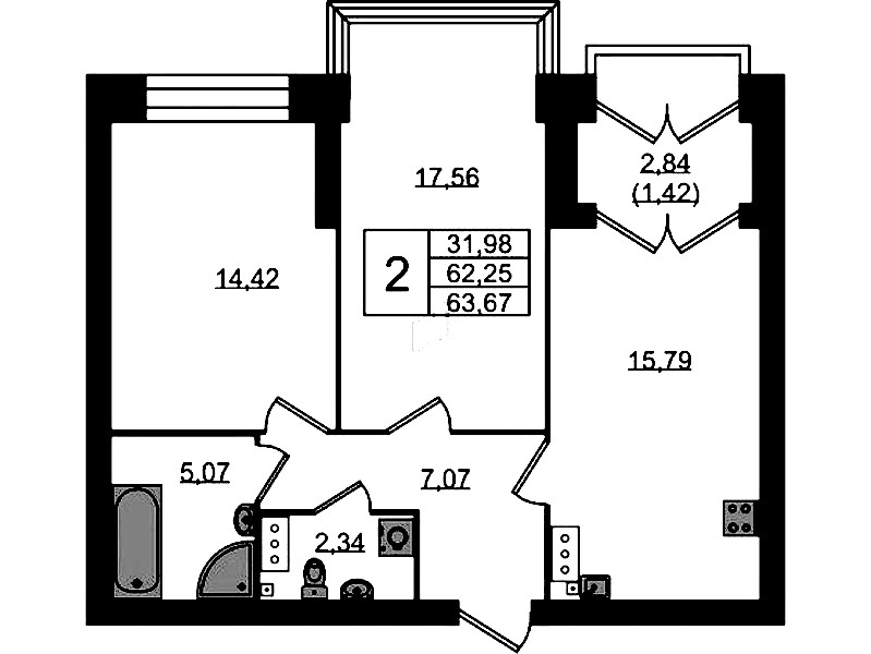 - Площадь63,67 м2