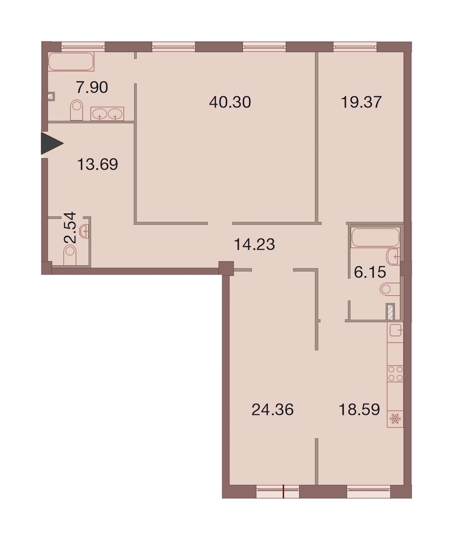 - Площадь кухни18,59 м2