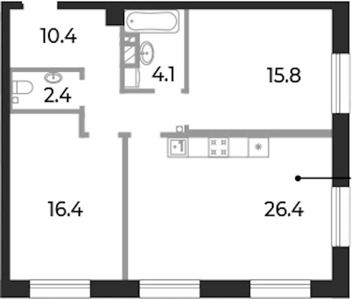 • Площадь кухни26,4 м2