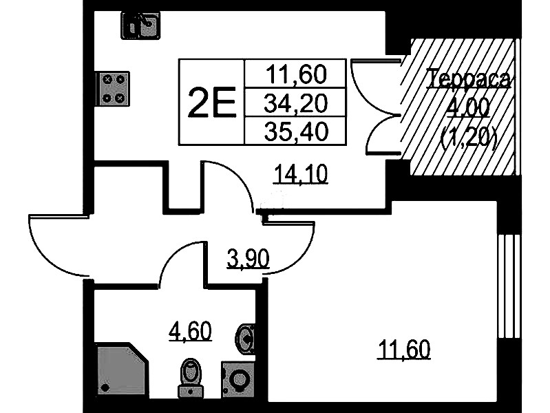 Однокомнатная квартира на 1-ом этаже 35,4 кв.м