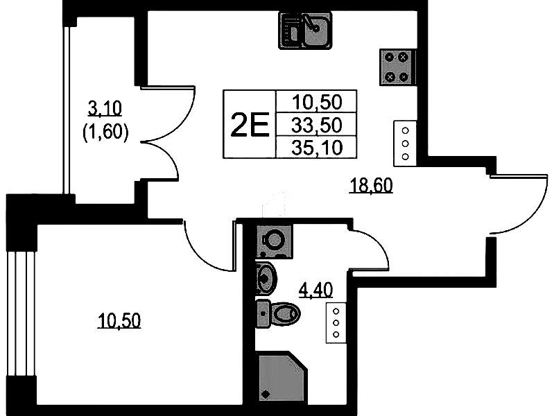 Однокомнатная квартира на 9-ом этаже 35,1 кв.м