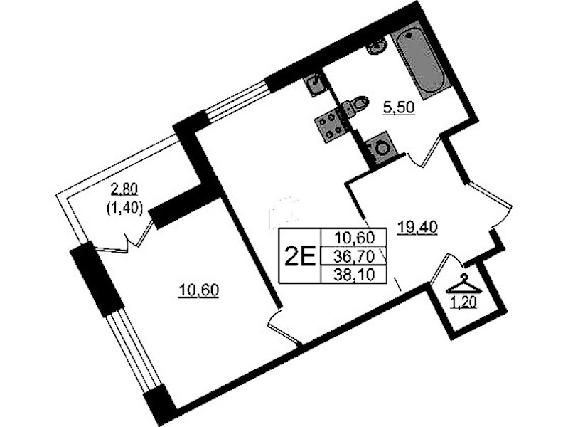 Однокомнатная квартира на 2-ом этаже 38,1 кв.м