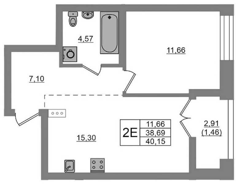 - Площадь40,15 м2