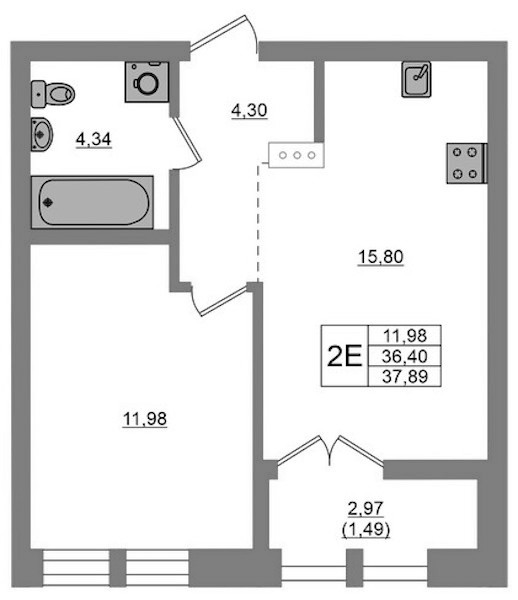 - Площадь37,89 м2
