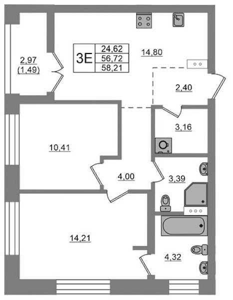 - Площадь58,21 м2