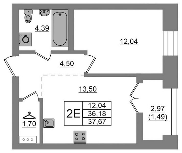 - Площадь37,67 м2