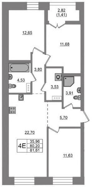 Трёхкомнатная квартира на 9-ом этаже 81,61 кв.м