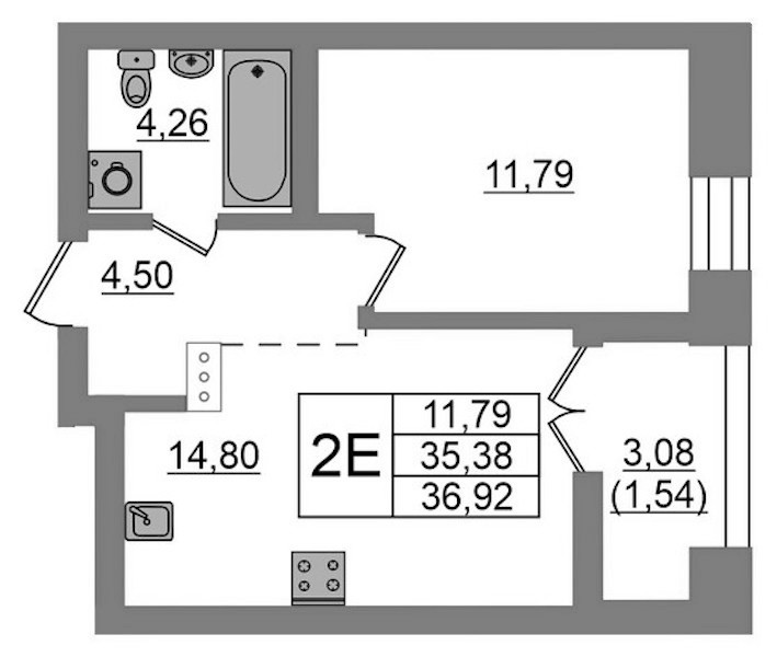 Однокомнатная квартира на 3-ем этаже 36,92 кв.м