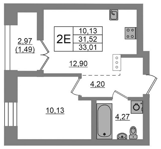 Однокомнатная квартира на 5-ом этаже 33,01 кв.м