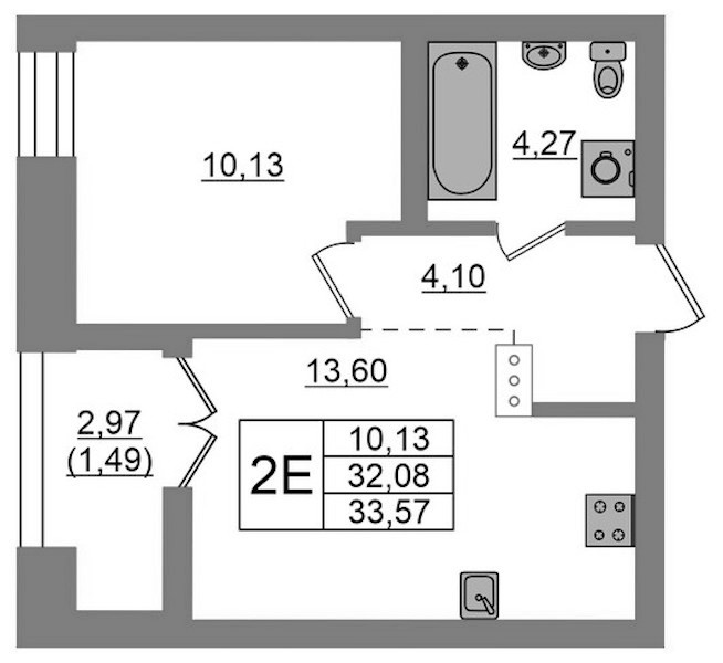 - Площадь33,57 м2