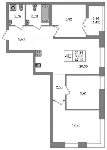 - Площадь67,49 м2