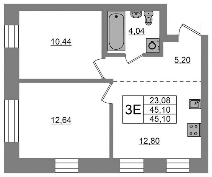 - Площадь45,1 м2