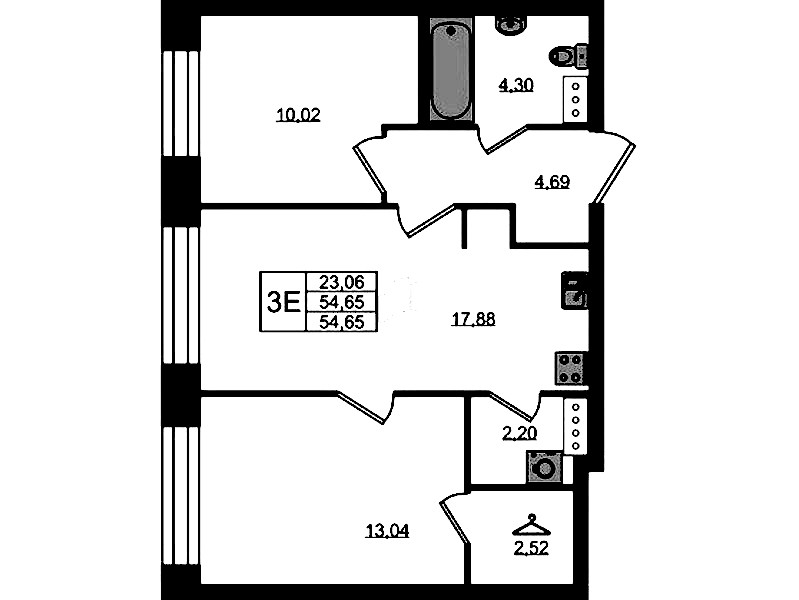 - Площадь54,65 м2
