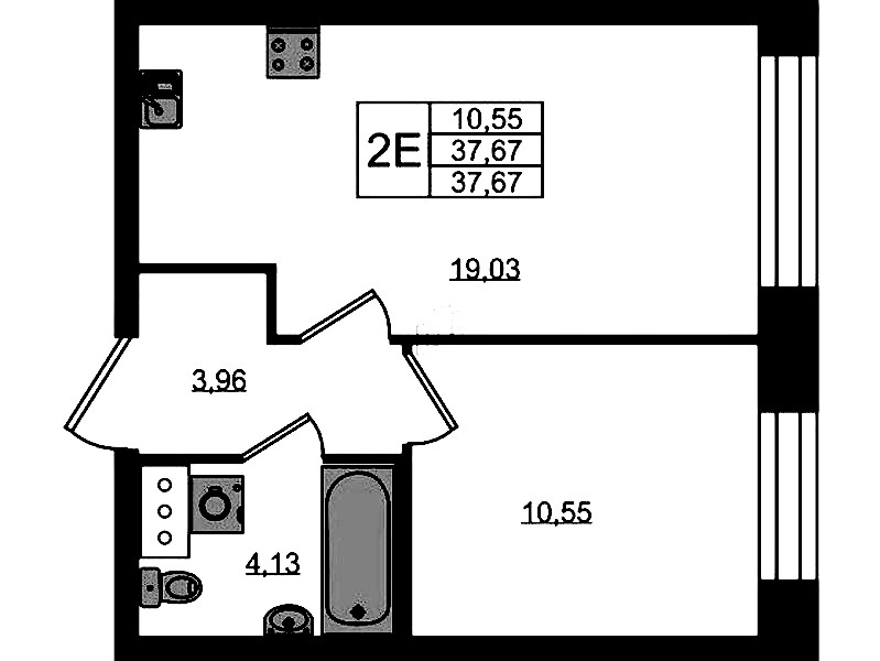 Однокомнатная квартира на 3-ем этаже 37,67 кв.м