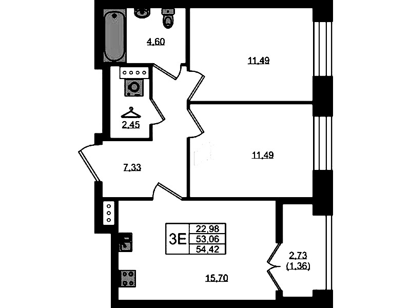 - Площадь54,42 м2
