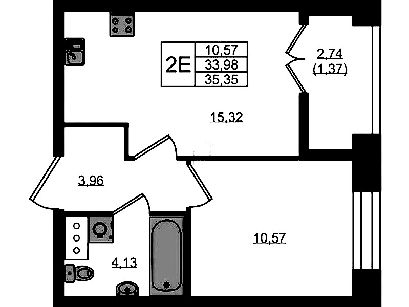 Однокомнатная квартира на 9-ом этаже 35,35 кв.м