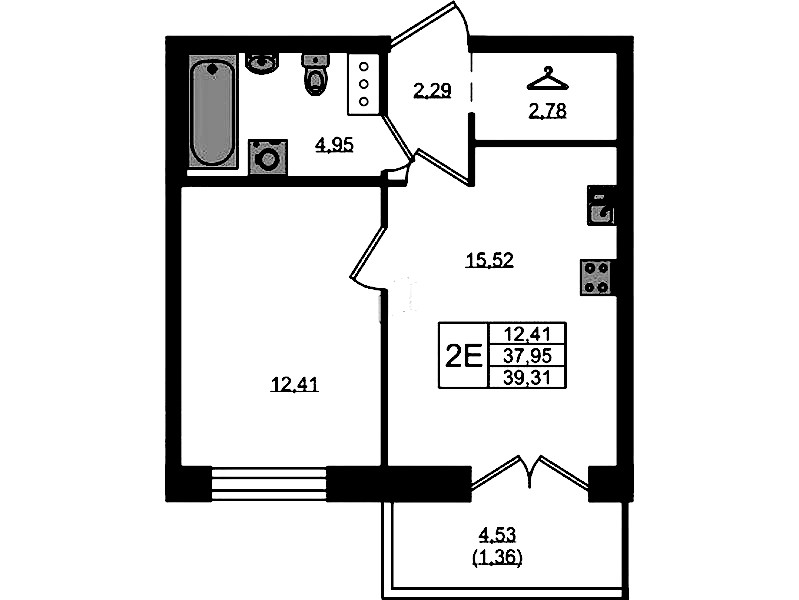Однокомнатная квартира на 10-ом этаже 39,31 кв.м