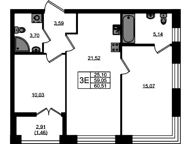 Двухкомнатная квартира на 2-ом этаже 60,51 кв.м