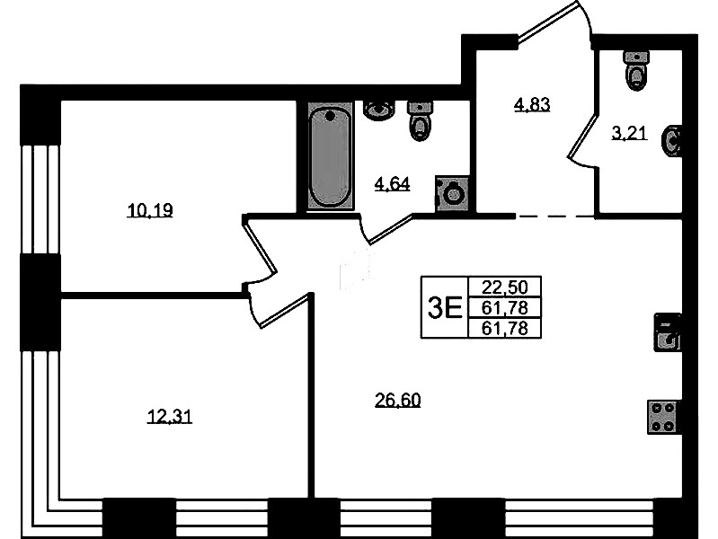 Двухкомнатная квартира на 2-ом этаже 61,78 кв.м