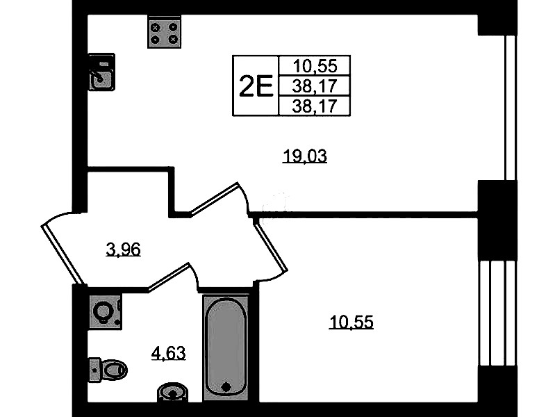 Однокомнатная квартира на 2-ом этаже 38,17 кв.м