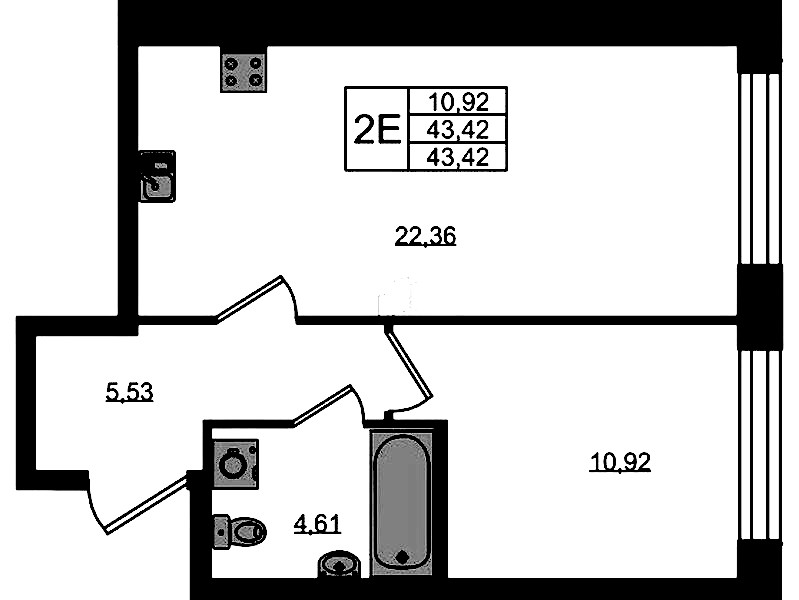 - Площадь43,42 м2