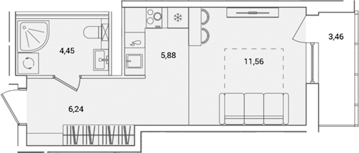 Квартира-студия на 2-ом этаже 29,86 кв.м