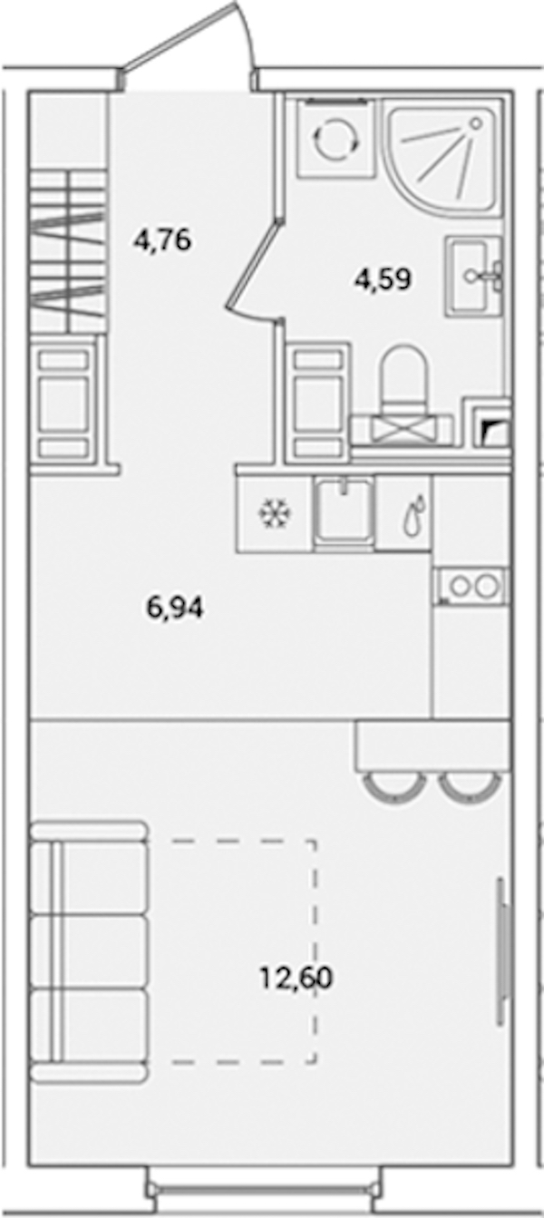 Квартира-студия на 8-ом этаже 28,49 кв.м