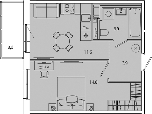Однокомнатная квартира на 7-ом этаже 37,9 кв.м