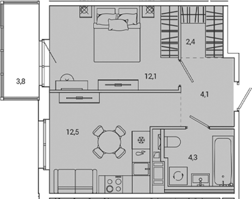 • Площадь кухни12,5 м2