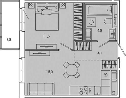 - Площадь38,5 м2