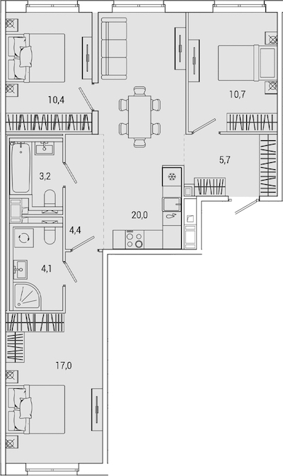 - Количество комнат3