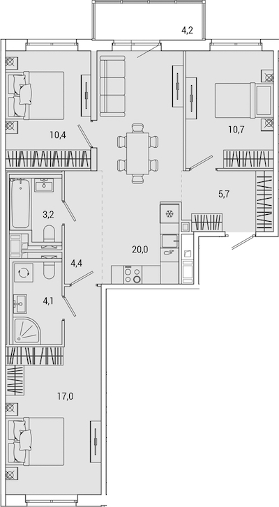 - Количество комнат3