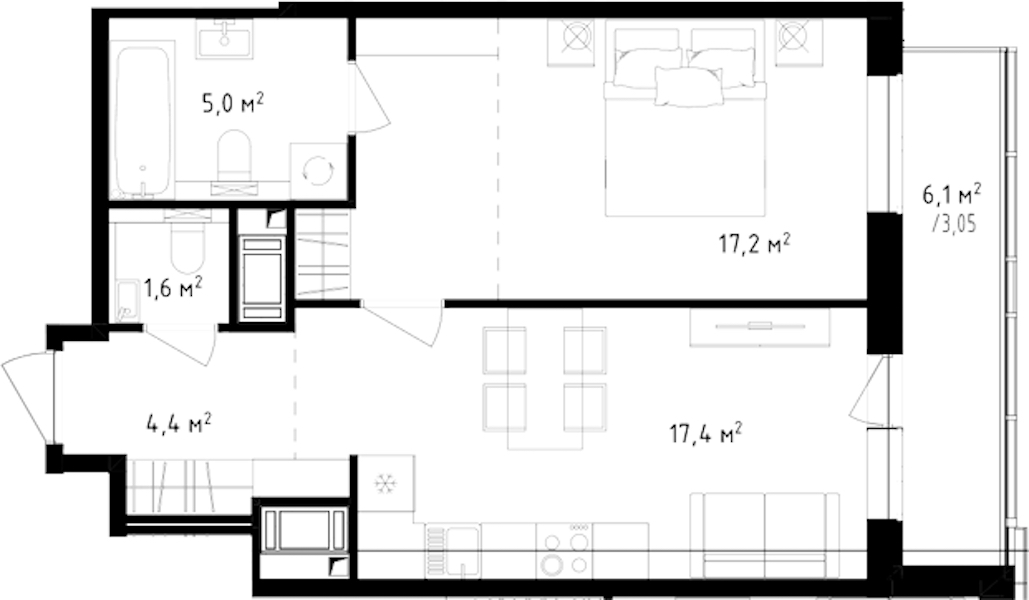Однокомнатная квартира на 20-ом этаже 48,65 кв.м