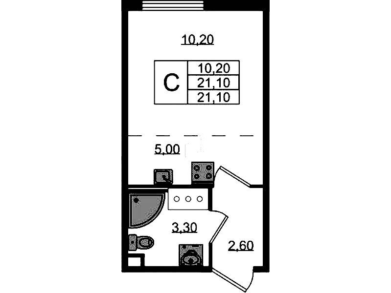 Квартира-студия на 23-ем этаже 21,1 кв.м