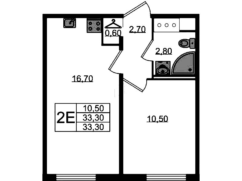 Однокомнатная квартира на 25-ом этаже 33,3 кв.м